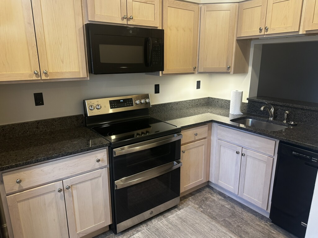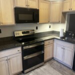 Inside, you’ll find stylish wood flooring throughout the main living areas, complemented by soft, comfortable carpeting in both bedrooms. The modern kitchen features granite countertops and a double oven, making it ideal for both everyday living and entertaining. The home also includes the convenience of an on-site washer and dryer, a private deck for relaxing outdoor space, and a carport for covered parking.