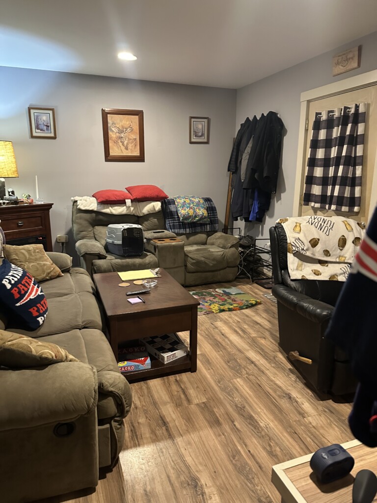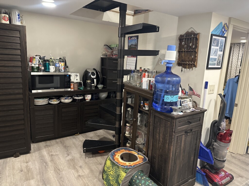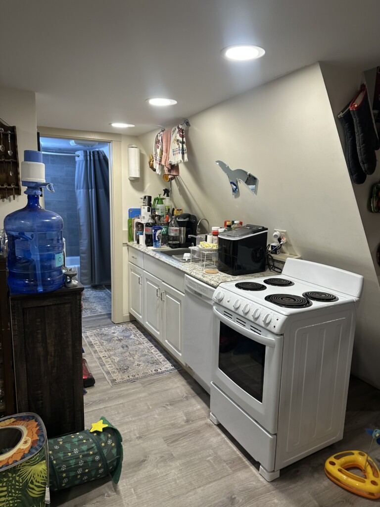 The back yard is on a slight incline, but has a firepit, picnic table and a small swing to relax and enjoy the outdoors. Hiking trails are within walking distance. There is also a firepit below that is enjoyable to sit by. Partially finished basement and exercise equipment. Washer/Drier and dish washer.