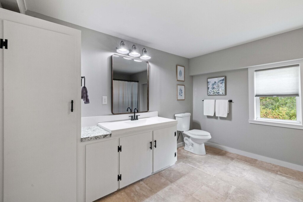 Private Single Family Home with 4 bedrooms, 2 On Each Level, and One Full Bath + Washer Dryer in Unit! Fully applianced kitchen with dishwasher & built in microwave, blender, toaster, coffee pot- all the cooking needs you can image are setup like a home! Bed, bath linens are provided plus a washable shower liner. Enjoy the ease of washer dryer in the cottage. All new windows and heat this unit is warm and toasty for winter & will be cool with window ac’s in summer months.