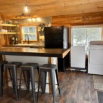 Warm wood interiors, vaulted ceilings, and soft lighting create a calming space to unwind. The open-concept layout features a comfortable sleeping loft, a relaxing living area, and a well-equipped kitchenette for easy, everyday living.