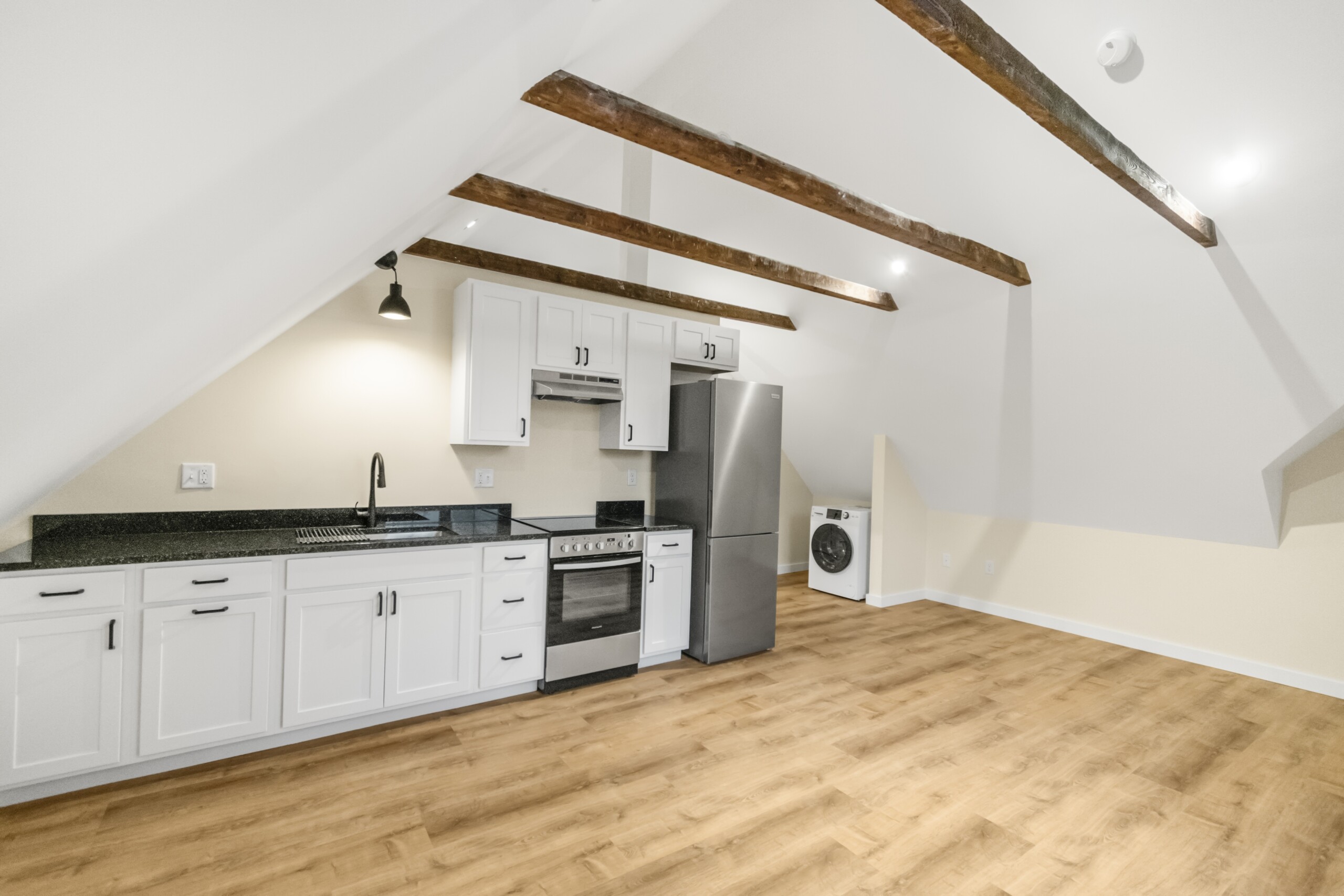 Modern, efficient one bedroom/one bath apartment right in the center of Fairlee, Vermont next to Chapman’s General Store. Stainless steel appliances, granite countertops, large deep sink, new vinyl plank floors, and a spacious bedroom with two large closets. Stacked washer/dryer in unit. Off-street parking. This is the perfect location! Close to town amenities, but with quick access to I-91 to points north or south and near beautiful trails and lakes to enjoy everything the Green Mountain State has to offer. AND right across the river from New Hampshire!