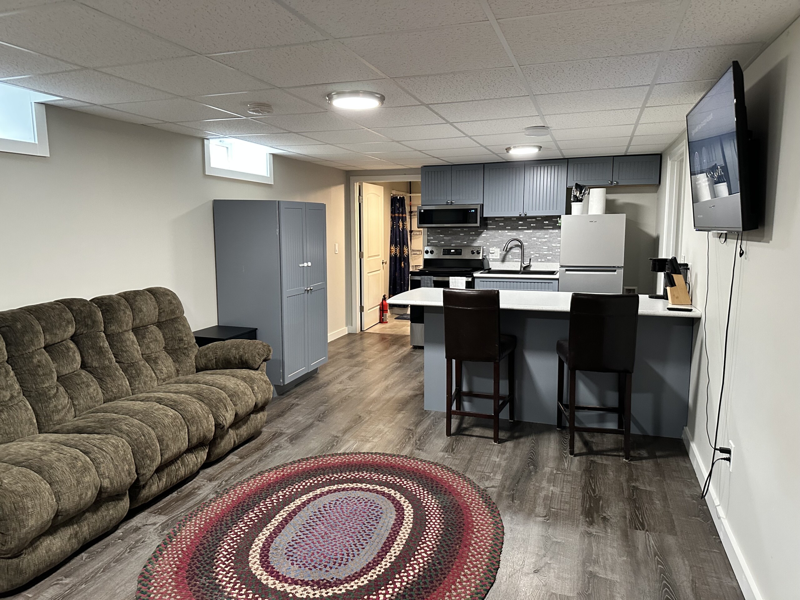 Basement apartment with separate entrance. Electric heat, hot water and internet included. Trash pickup and 1 parking space also included.