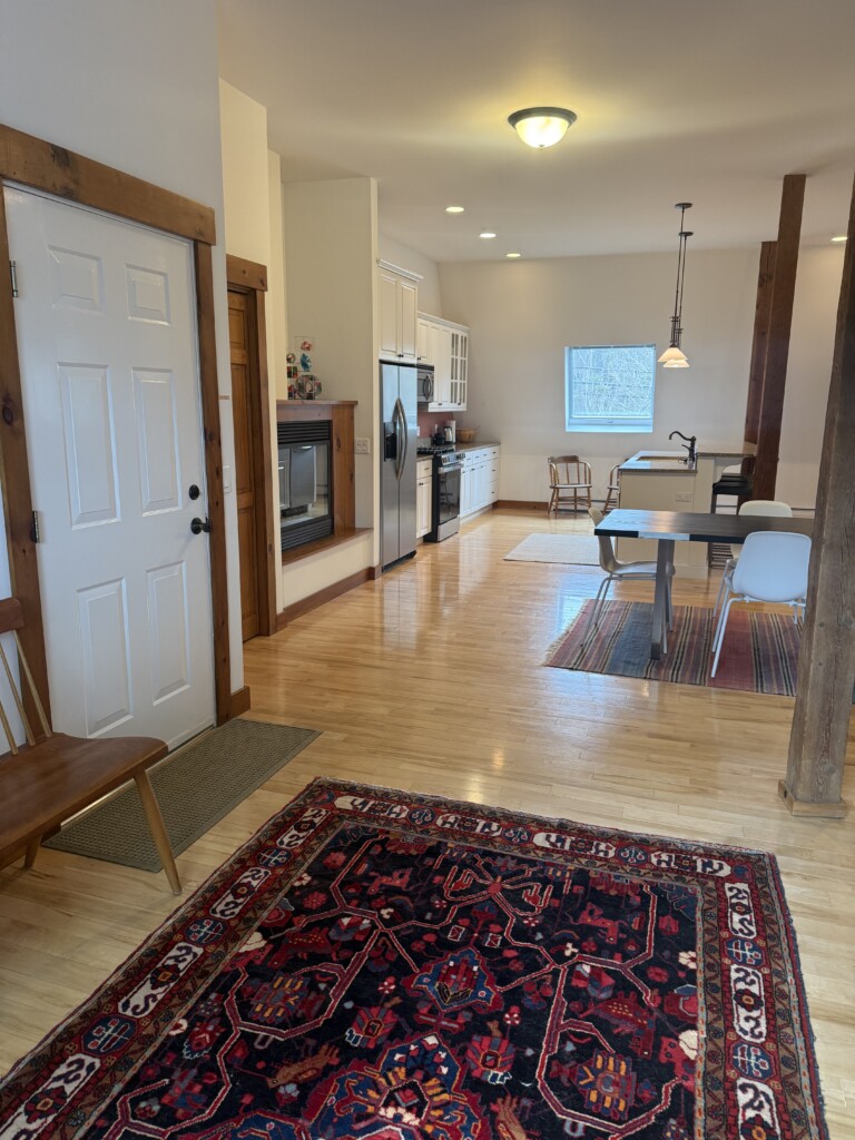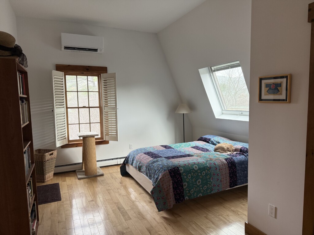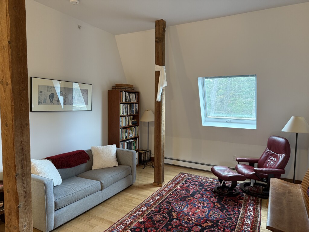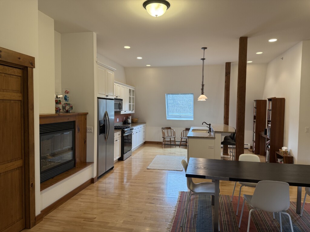 2 bedroom, 2 full bathroom condo in a 4-unit gorgeously renovated 1890 barn. This 1335 sq foot space retains its historic charm and offers a New England Contemporary aesthetic. High ceilings. Large windows and skylights with ample natural light and built-in window treatments. Exposed wooden beams. An open plan kitchen and living area as well as a gas fireplace. The kitchen features attractive cabinetry, granite countertops, stainless steel appliances and a central island with a breakfast bar. The primary bedroom includes an en suite bathroom with granite countertops and spacious shower, along with a walk-in closet. The second bedroom/office also offers a walk-in closet, ample storage, tons of light. The second full bath includes granite countertops, a bathtub, and a new washer-dryer. This property abuts the Mink Brook Nature Preserve and is surrounded by miles of walking and hiking trails. The property is 1.5 miles to the Dartmouth Coop Food Store and 2 miles to either Dartmouth campus or DHMC. The space includes a covered parking spot (with access to electricity for electric/hybrid vehicles – though no Tesla charger). Unit is tastefully and functionally yet sparingly furnished and furnishing needs somewhat negotiable. Significant storage space available in safe, dry separately lockable unit in basement Overall grounds maintenance, including snow removal provided by condo HOA. No pets preferred. One small pet negotiable with additional pet deposit. Additional photos available upon request.