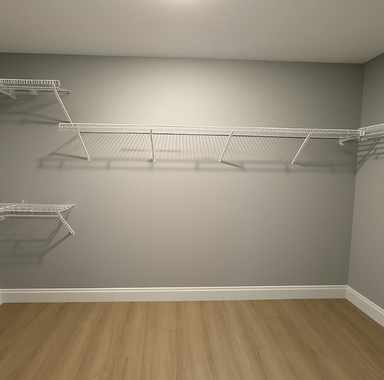 Upstairs has 2 bedrooms with walk in closets and a bathroom, as well as an attic.