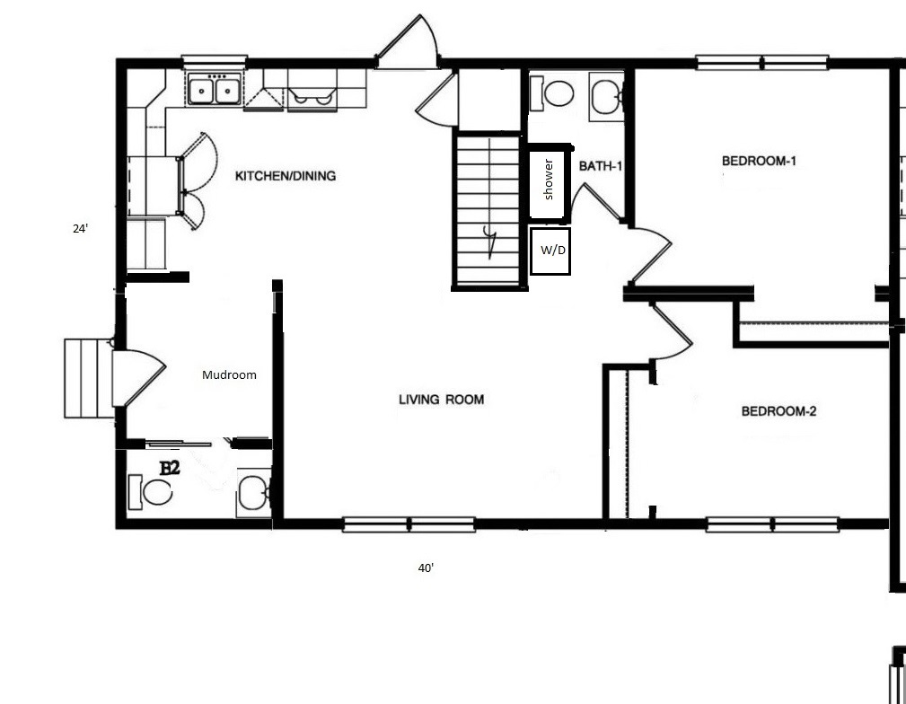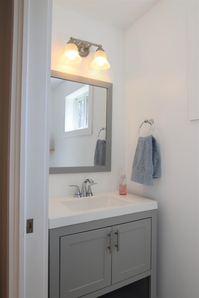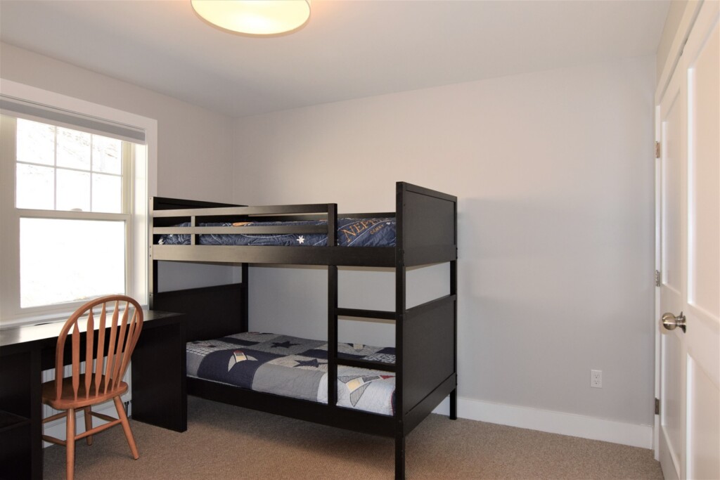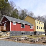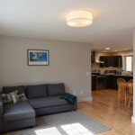 Available apartment is the red-side of the building. One floor living includes foyer/mudroom with adjacent half bath and main kitchen/dining/living room leading to a private back deck. 2 first floor bedrooms with adjacent full bath, stacked full laundry – see approximate floor plan in photos. The apartment has a large shared flat front yard, private and ample unfinished basement (another 960 sqft) for storage or home gym and the backyard directly connects to hundreds of acres of hiking. In case of snow, roads are regularly plowed early, and snow tires or 4WD are recommended. School bus for Norwich/Dresdon stops at the end of the driveway for pickup at 7:10am and drop-off at 3:45pm.