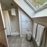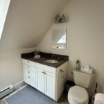 The in-law apartment is a 1 bedroom, 1.5 bathroom unit above the property’s garage. The living room has two fold-out chairs that could work as beds and a pullout couch. The kitchen is fully stocked with utensils, silverware, plates, etc. There is a washer and dryer on the first floor next to the half bath.
