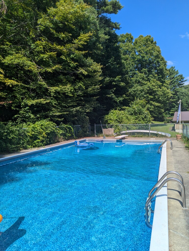 – Quiet road, large yard surrounded by woods