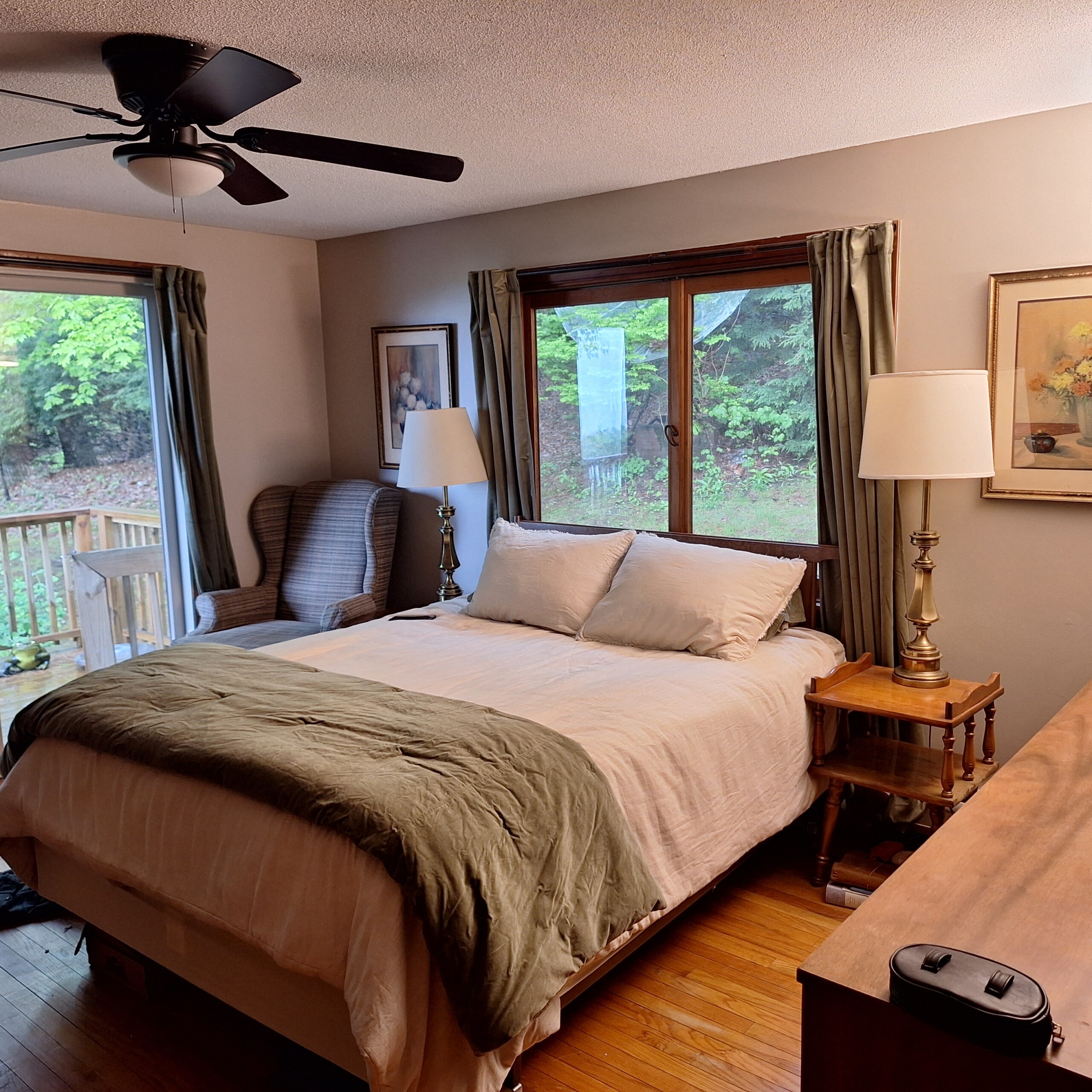 - Large windows with views of apple farm, neighboring hillsides, and Mount Killington