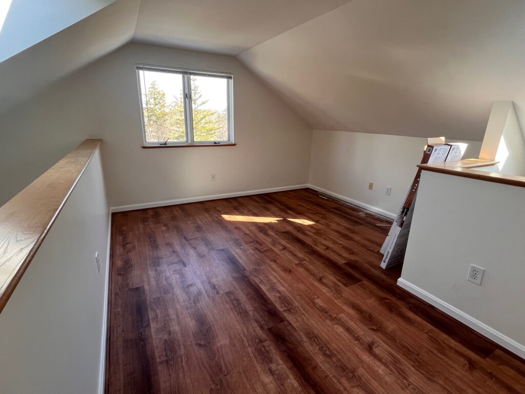 The open-concept living space is filled with natural light and features fresh updates throughout, including new paint and flooring. The main level includes a spacious primary bedroom suite, while the loft-style second bedroom offers added privacy along with its own bathroom—ideal for guests or a flexible work-from-home setup.